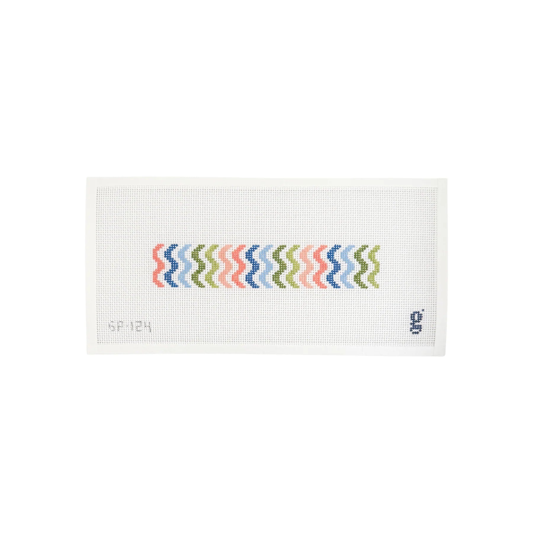 The colorful Rainbow Squiggle Fob is stitch painted on 13 mesh mono canvas.